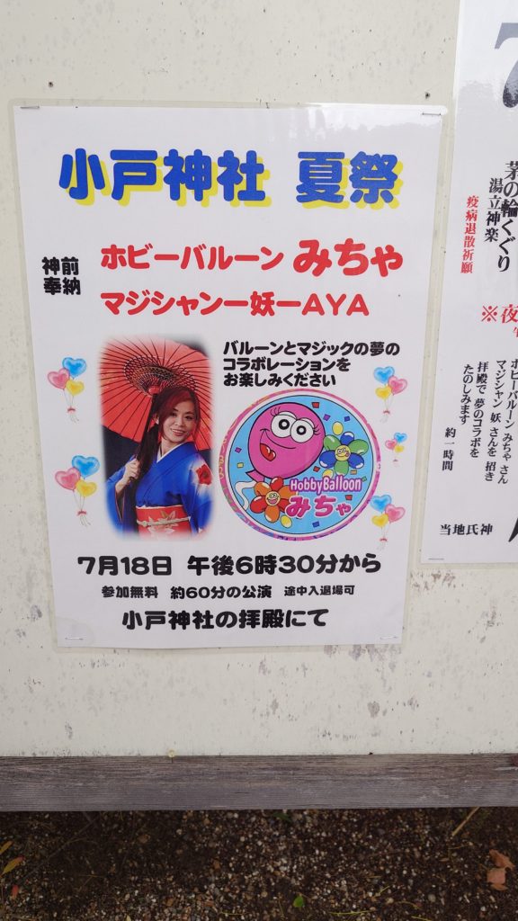 【兵庫県川西市】小戸神社で夏祭にマジシャン派遣|バルーンとコラボマジックショー
